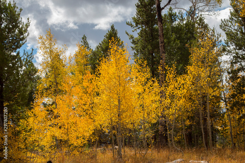 © Tsado, Fototapeta premium Autumn aspen trees along Battle Pass Scenic Byway in Wyoming