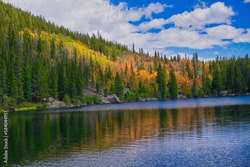 © Nelson Sirlin, Fototapeta premium Autumn at Bear Lake Rocky Mountain National Park USA