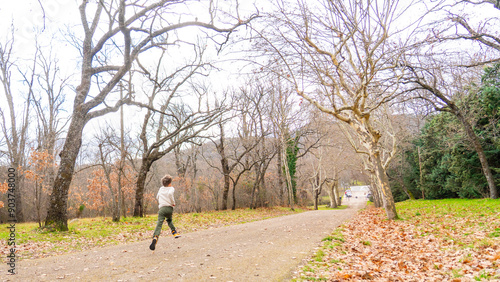 Obraz premium Autumn background of a park with a child running