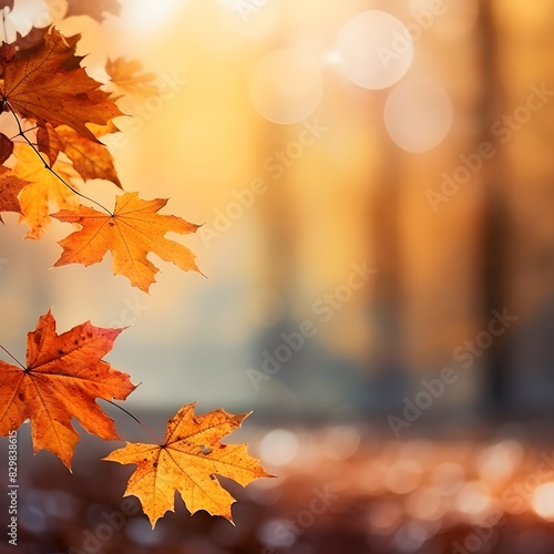 © Studicon, Fototapeta premium Autumn background with blurred autumn leaves and copy space. Generative AI.