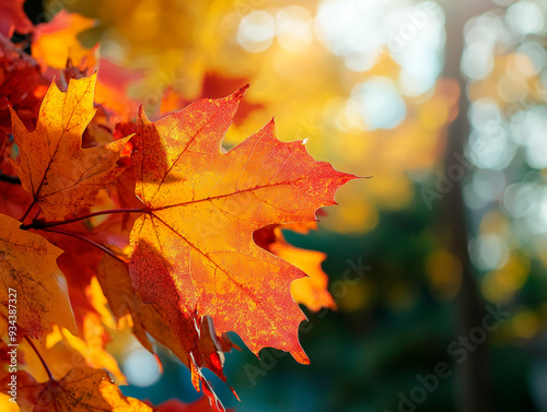 Fototapeta premium Autumn background. Yellow leaves. Idyll. Sunny.