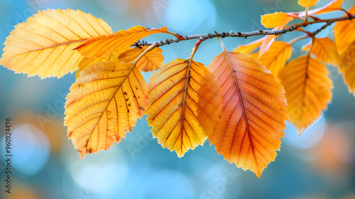 © irslan, Obraz premium Autumn beech leaves decorate forest land, beautiful nature bokeh background.