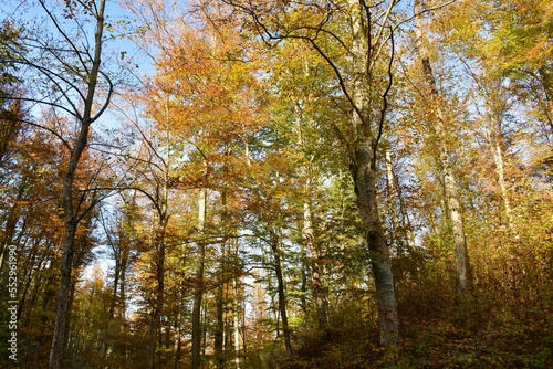 Fototapeta premium Autumn beech temperate, deciduous. broadleaf forest in yellow and orange autumn colors