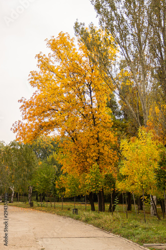 © Iryna, Naklejka premium Autumn bright color park with trees