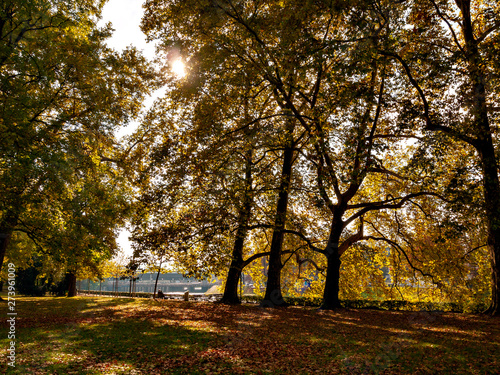 © Kazu, Naklejka premium Autumn color of Platzspitz Park in Zurich, Switzerland