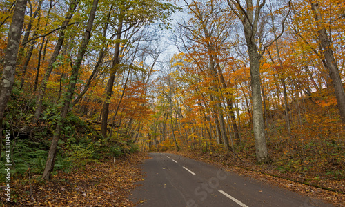 © Wipark, Naklejka premium Autumn color season at Towada, Japan.