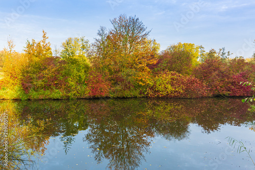 © Sander Meertins, Fototapeta premium Autumn colored forest landscape with small river
