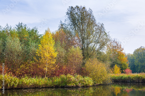 Obraz premium Autumn colored forest landscape with small river