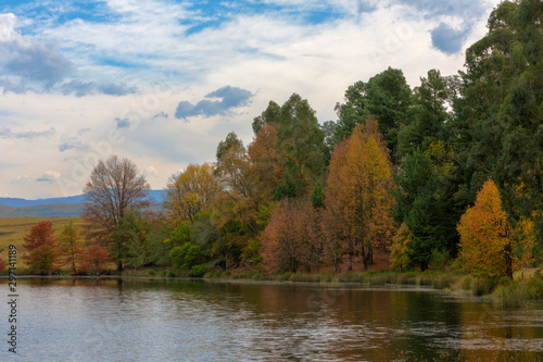 © hannesthirion, Fototapeta premium Autumn colored trees next to the pond