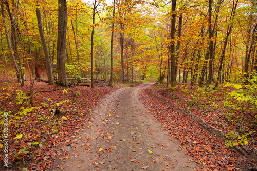 © ARAMYAN, Obraz premium autumn colorful forest with road