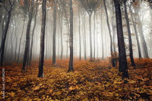 © andreiuc88, Obraz premium autumn colors in foggy forest