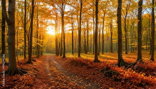© Woranan, Obraz premium Autumn Colors in Golden Forest