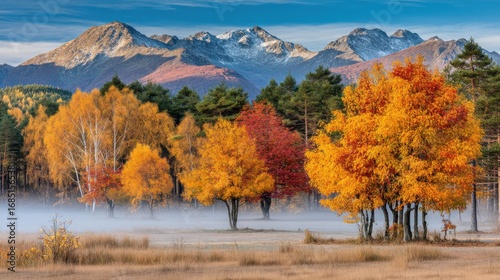 © Chatchanan, Fototapeta premium Autumn colors in mountain landscape serene nature scene majestic rocky mountains tranquil environment scenic viewpoint