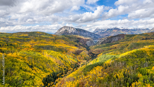 © Craig Zerbe, Fototapeta premium Autumn colors in the Colorado Rocky Mountains on scenic Gunnison County Road 12 through the Kebler Pass - view towards Marcellina Mountain