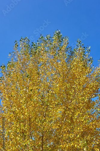 Fototapeta premium Autumn colourful tree on the background of blue sky.