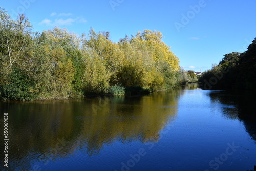 Fototapeta premium Autumn colours reflection on a river Nore, Kilkenny, Ireland