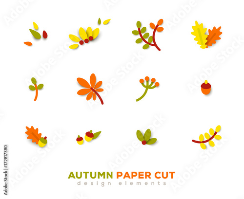 Fototapeta premium Autumn cute paper cut design elements.