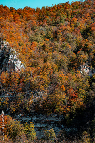 © vardan, Fototapeta premium autumn dark forest in the mountains