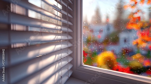 © Al, Obraz premium Autumn Day View Through Window With Blinds