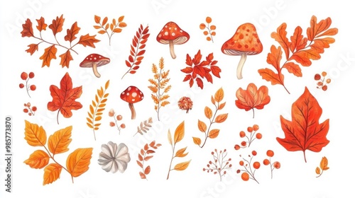 © AkuAku, Obraz premium Autumn decorative elements on a white background