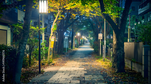 © predator, Obraz premium Autumn Evening Street In A Japanese Town