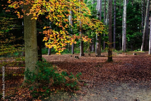 Naklejka premium Autumn Fall Colors Landscape with Red Yellow and Green Trees Reflected in...