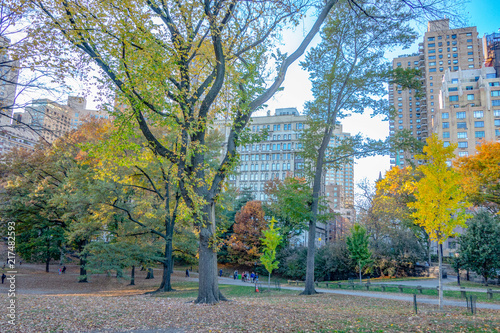 Naklejka premium Autumn Fall time in Central park, New York, USA.