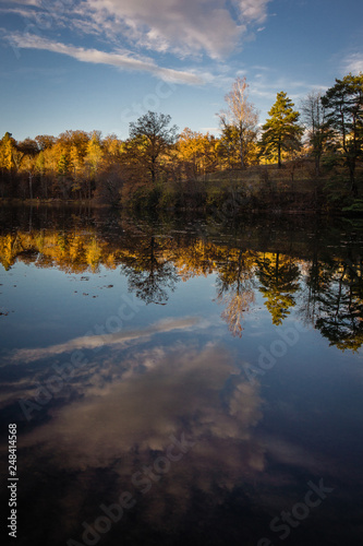 © Horner, Fototapeta premium autumn fallen leaf tree evening forest lake