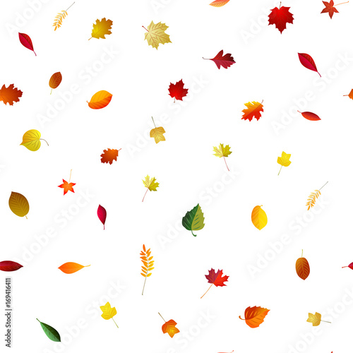 Obraz premium Autumn falling seamless bright background . Vector season pattern . Red and yellow leaves .