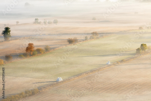 Obraz premium Autumn fog over an agricultural landscape