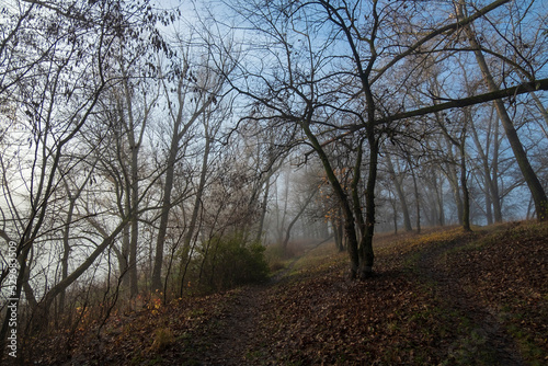 Obraz premium Autumn foggy morning by the river