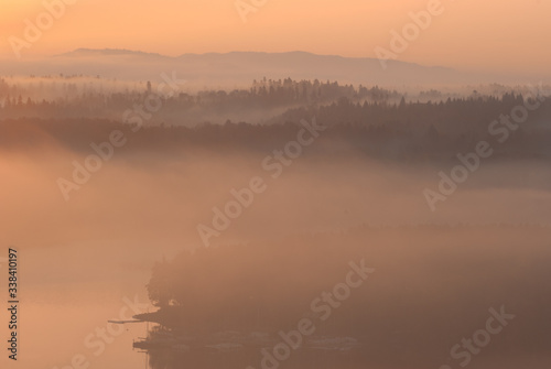 Fototapeta premium autumn foggy morning in bieszczady mountains