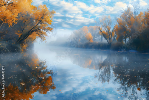 Fototapeta premium Autumn Foggy River Landscape Photography
