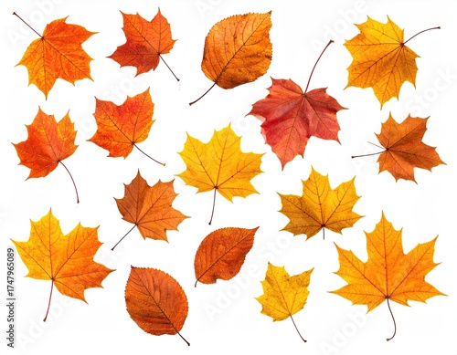 Obraz premium Autumn foliage, assorted shapes/colors isolated on white