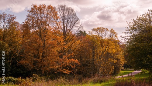 Fototapeta premium Autumn Foliage in Forested Areas, Seasonal Change
