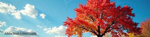 © chaiwat, Fototapeta premium Autumn foliage of tulip tree against a bright blue sky, deciduous trees, landscape photography, colorful foliage