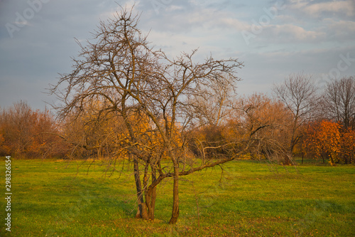 Obraz premium Autumn forest and meadow, tree alone