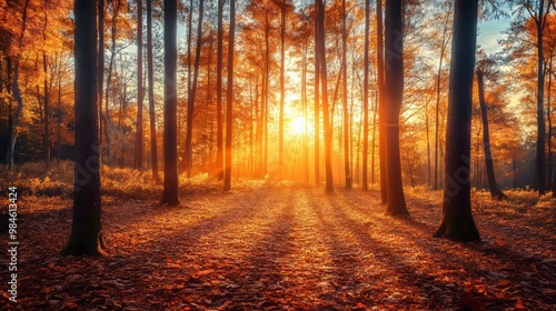 Obraz premium Autumn forest at sunrise
