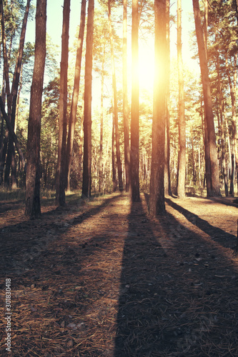 © Vladimir Kazimirov, Obraz premium Autumn forest background, yellow leaves, leaf fall