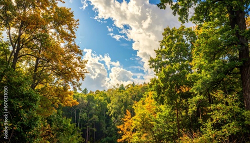 Naklejka premium Autumn forest canopy with vibrant fall colors