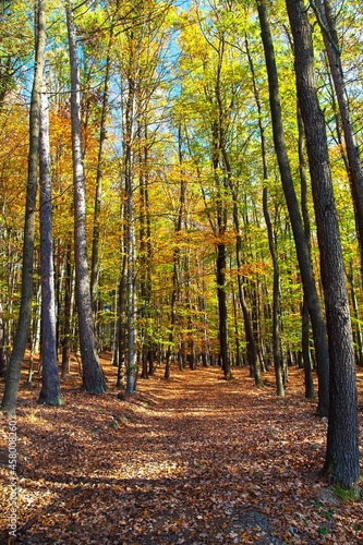 Naklejka premium Autumn forest, deciduous beech trees woodland, Chriby