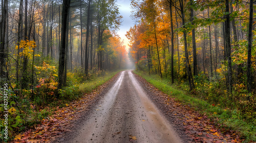 Obraz premium Autumn Forest Dirt Road With Fall Foliage