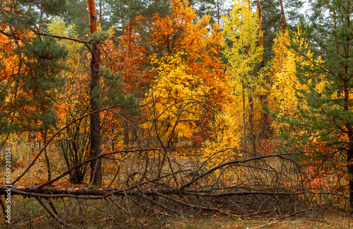 Obraz premium Autumn forest. Fallen leaves rustle underfoot. Autumn colors attract the eye. A pleasant walk in nature.