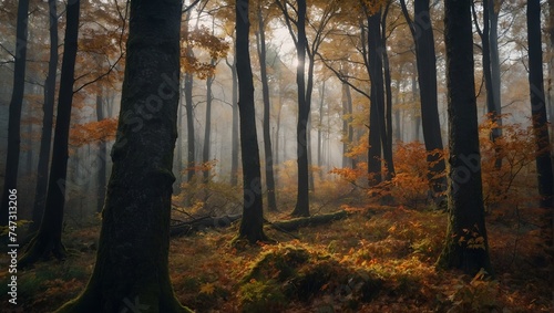 Obraz premium autumn forest in the fog