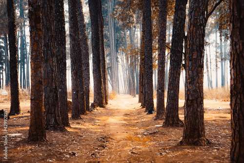 Obraz premium autumn forest in the morning