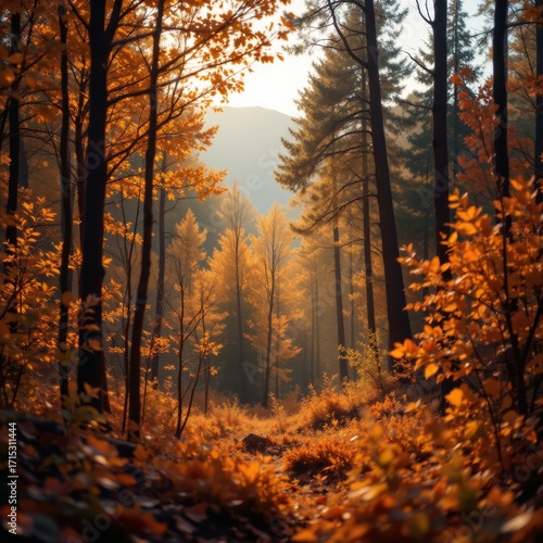 Fototapeta premium Autumn Forest Landscape with Golden Leaves