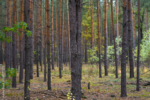 © EvhKorn, Obraz premium Autumn forest landscape with pines and birches