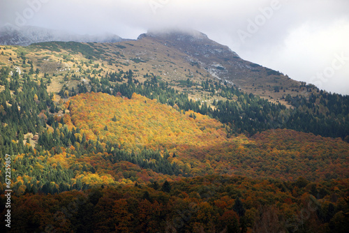 Fototapeta premium Autumn forest landscape with yellow folige