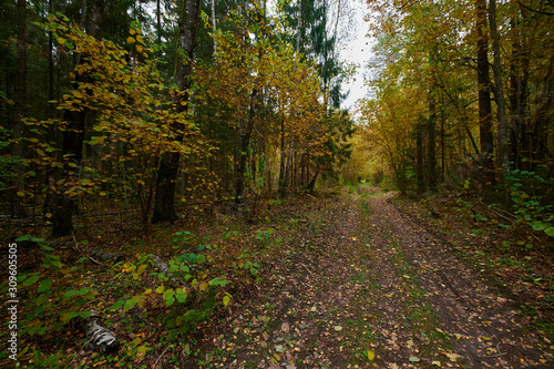 © Photo, Fototapeta premium Autumn forest nature. Vivid morning in colorful forest