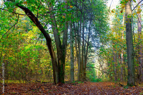 © sergofan2015, Fototapeta premium Autumn forest on a sunny day. Autumn in the park.